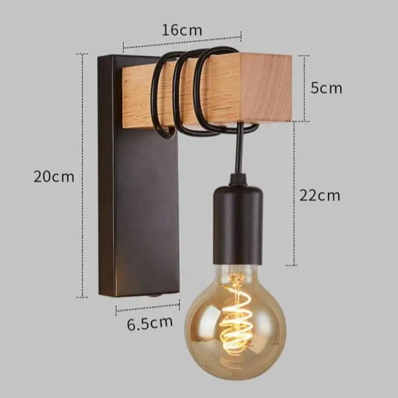 La lámpara de pared de madera y negra