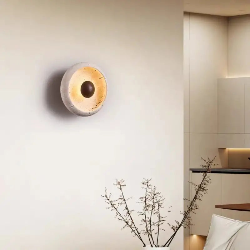 Lejos de ser una simple lámpara, la lámpara LED de pared de piedra y madera, de estilo orgánico y elegante, cumple una función decorativa por sí misma. Funciona como una auténtica pieza de arte mural, capaz de transformar una pared aburrida en un elegante punto focal.