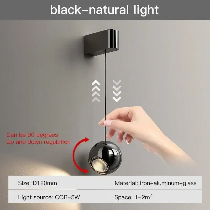 La esfera aporta una sensación de suavidad al espacio. A diferencia de las formas angulares o muy técnicas, evoca una armonía natural y reconfortante. Es precisamente esta característica la que hace que la moderna lámpara de pared esférica de metal negro ajustable sea tan popular en proyectos de decoración.