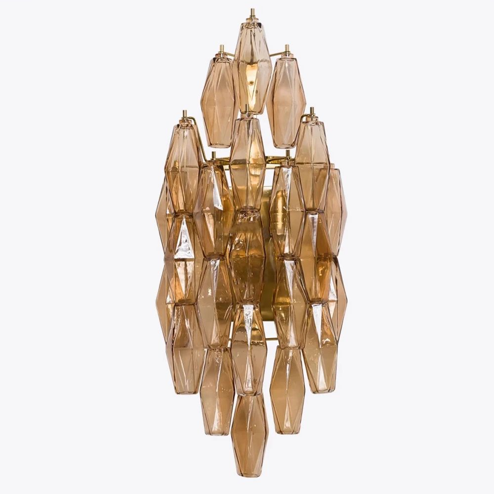 El aplique de pared geométrico contemporáneo de vidrio cautiva por la forma en que el vidrio interactúa con las formas geométricas. La luz se fragmenta, refleja y difunde sutilmente, adaptándose perfectamente a los contornos del espacio circundante, creando una atmósfera cálida, armoniosa y visualmente estimulante.