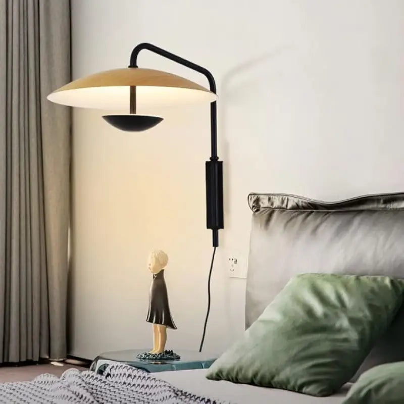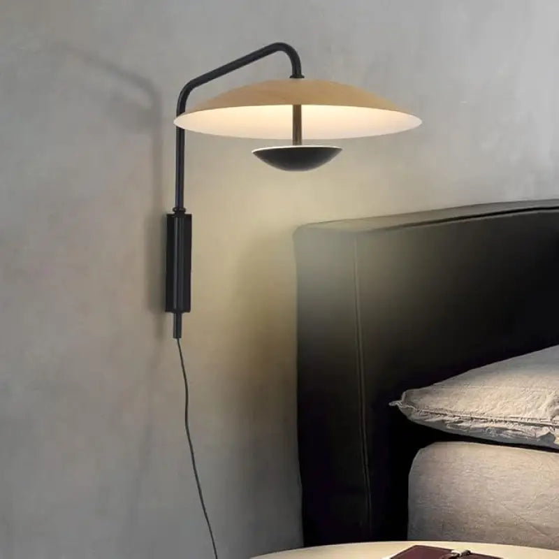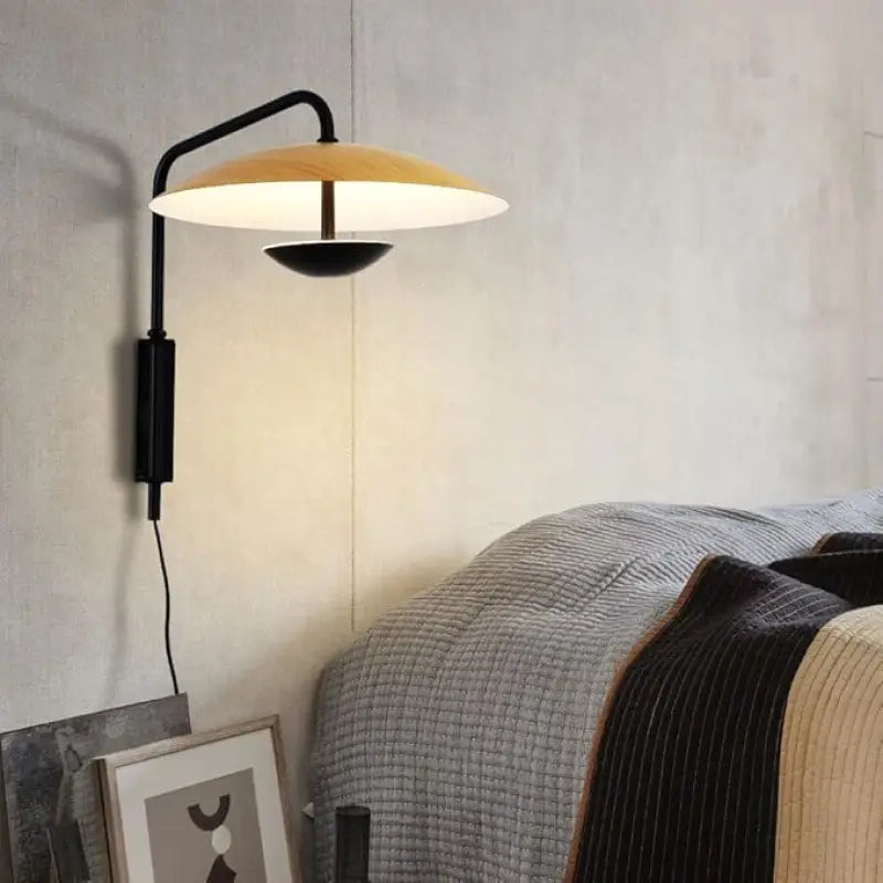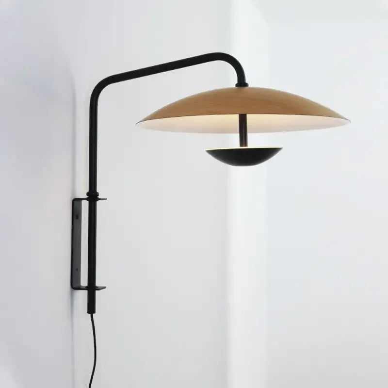 Este aplique de diseño en madera clara y metal negro también destaca por su practicidad. Montado en la pared, libera espacio en el suelo y la superficie. Es especialmente adecuado para espacios pequeños donde cada metro cuadrado cuenta. En un dormitorio, es un excelente sustituto de una lámpara de noche. En un pasillo, proporciona luz sin resultar intrusivo. En una oficina, ofrece una luz focalizada sin ocupar el valioso espacio de la encimera. Su discreta funcionalidad lo convierte en una opción inteligente para quienes buscan tanto estética como optimización del espacio.