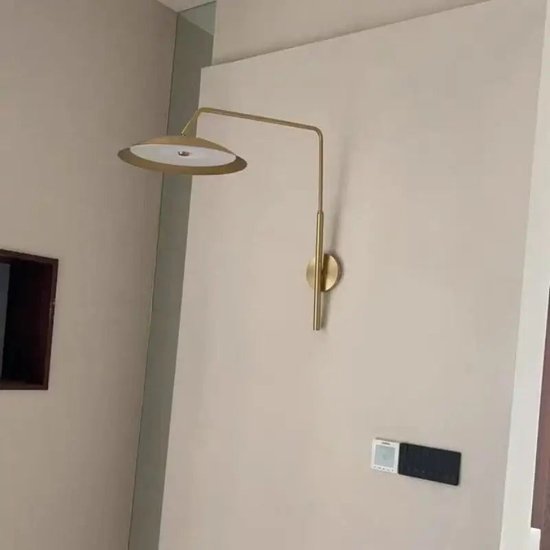 Aplique de pared de diseño en latón con brazo esbelto, ideal para realzar un interior con una luz elegante y cálida y un estilo refinado y atemporal.