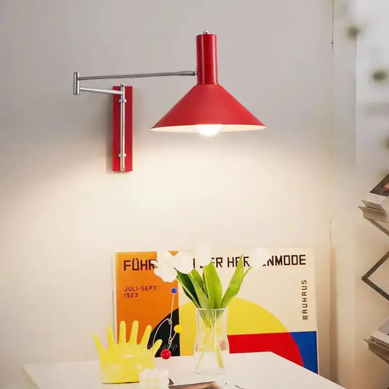 Aplique de pared de diseño industrial con brazo giratorio tipo taller, ideal para estructurar espacios y crear un ambiente cálido y contemporáneo.