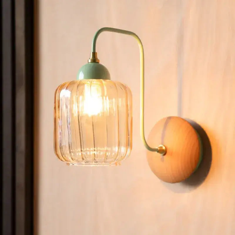 Aplique de pared de diseño con cristal transparente y base de madera, una luminaria elegante y funcional, que combina la calidez de la madera y una luz suave para todos los estilos.