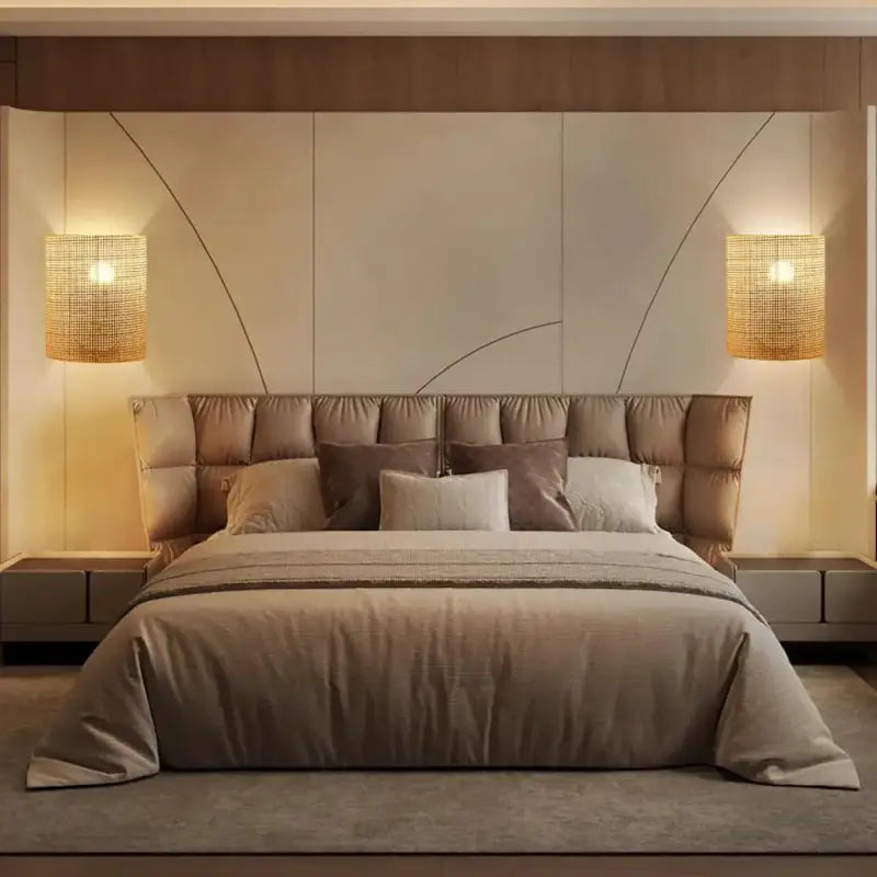 Esta lámpara no solo ilumina, sino que realza el espacio. Su diseño curvo acentúa las líneas de las paredes y aporta un dinamismo sutil, casi escultural. El bambú, delicadamente trabajado, se convierte en un elemento estilístico por sí mismo. Este aplique de pared de bambú curvo para iluminación zen se integra a la perfección en una entrada, sala de estar, pasillo o dormitorio, aportando un toque de suavidad natural y una identidad visual refinada a cualquier espacio. Atrae la mirada sin sobrecargar el ambiente.