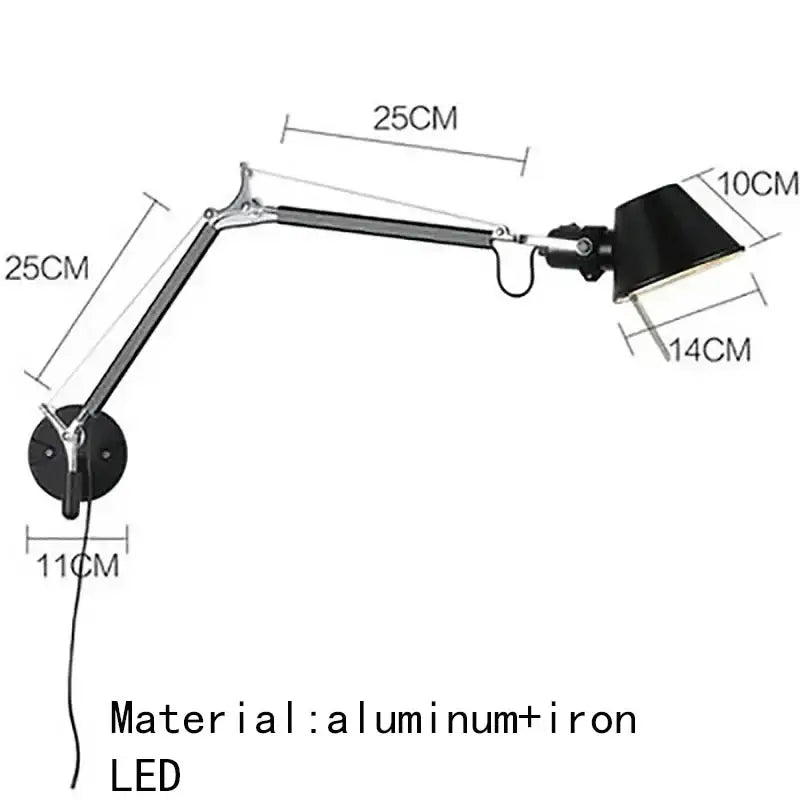 Esta lámpara de pared metálica ajustable de estilo industrial ofrece una estética atrevida que se integra a la perfección en entornos urbanos y modernos. El metal empleado en esta luminaria evoca una sensación de solidez y sofisticación, enriqueciendo visualmente un dormitorio, sala de estar u oficina. Esta estética se inspira en principios atemporales del diseño industrial, con líneas limpias y superficies metálicas que llaman la atención y realzan la arquitectura de las paredes, creando un ambiente cálido, elegante y enérgico.