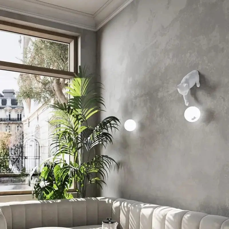 Original lámpara de pared de gato con moderna bola de luz que seduce por su diseño lúdico y elegante, aportando una atmósfera suave y poética.