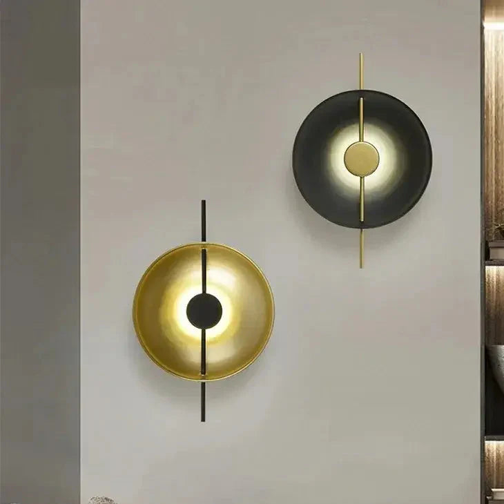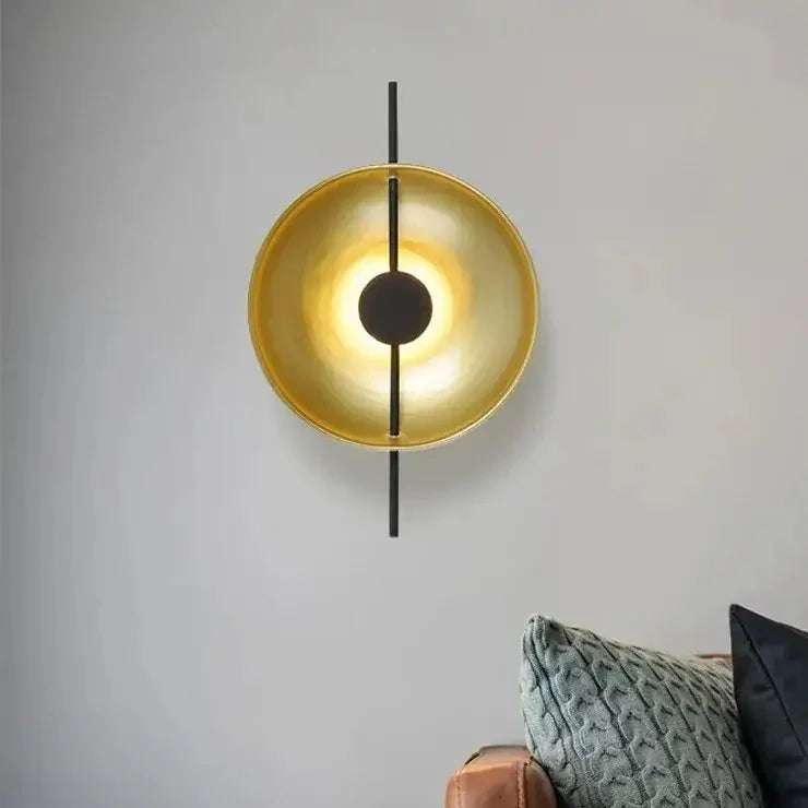 Aplique de pared escultural con efecto diana en negro y latón