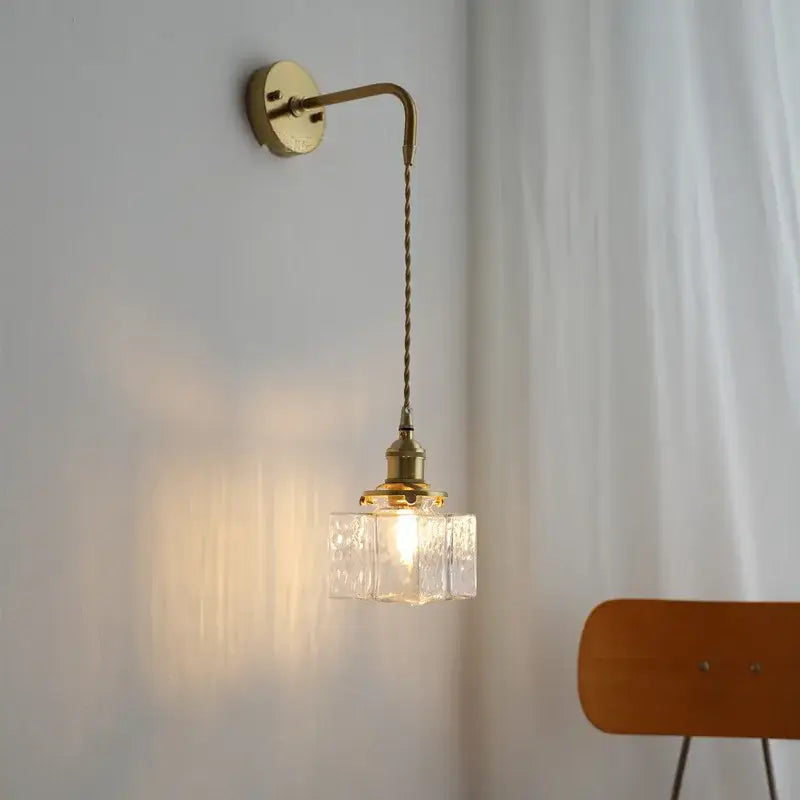 Applique murale style ancien laiton avec suspension verre apporte une lumière douce et élégante, idéale pour créer une ambiance chaleureuse et raffinée dans votre intérieur.