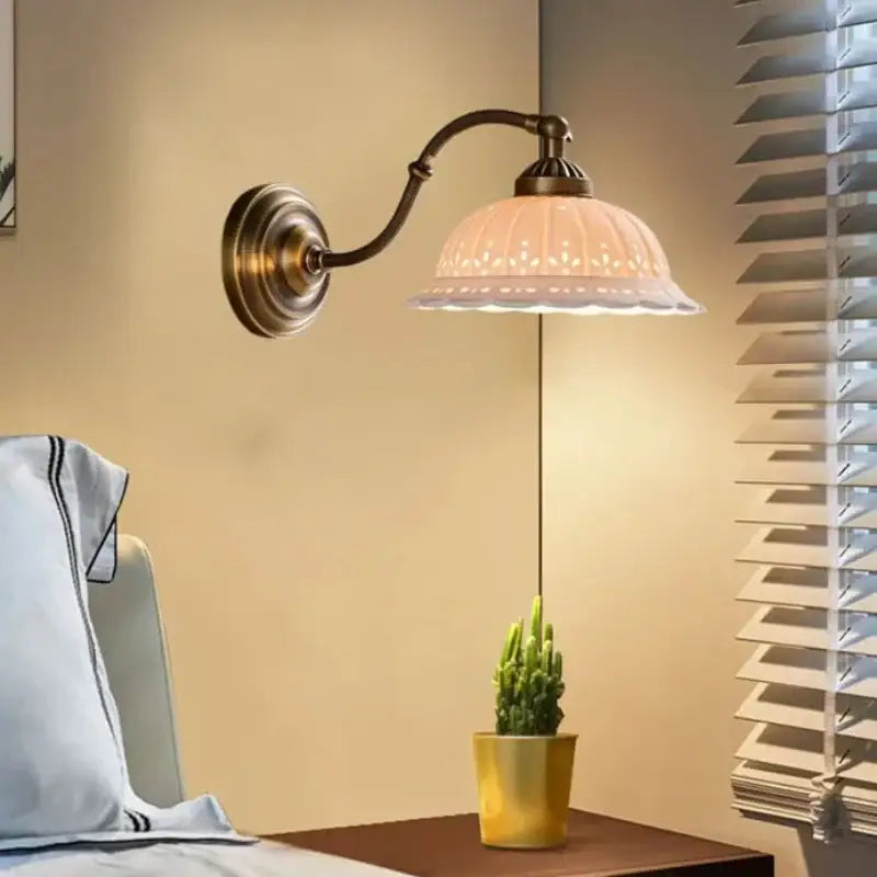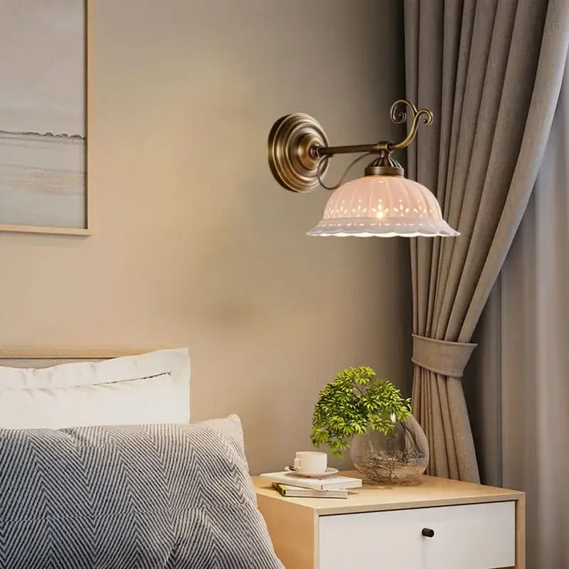 No busque más, la lámpara de pared vintage en cristal crema y metal bronce aporta un toque elegante y cálido a su interior con su diseño refinado.