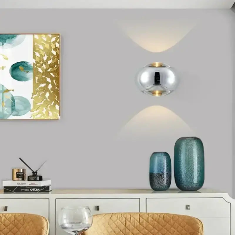 Aplique de pared discreto con proyección superior e inferior, ideal para crear un ambiente elegante y cálido en cualquier interior.