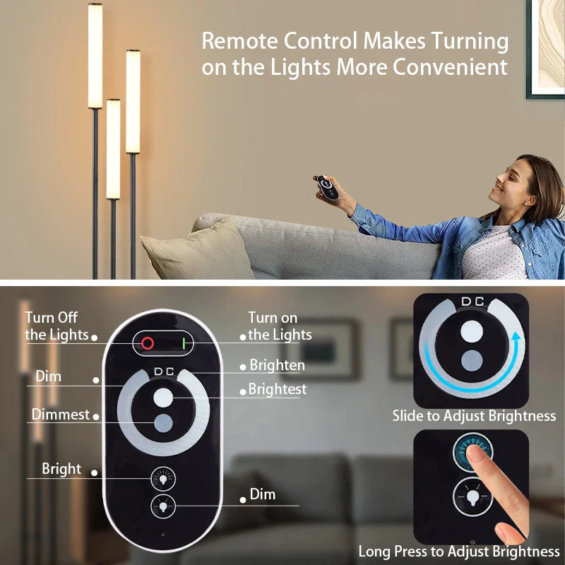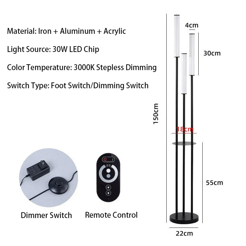 Lampadaire design contemporain led à tubes élégants apporte une touche raffinée, structure l’espace et crée une ambiance lumineuse élégante et apaisante.