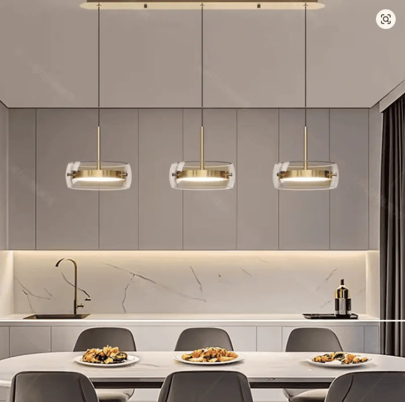 Esta luminaria, inspirada en las antiguas fábricas y talleres, aporta un toque de encanto industrial a su espacio culinario.