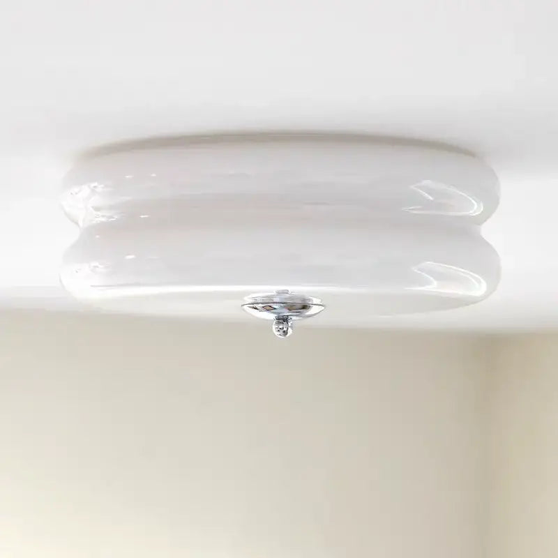 Lámpara de techo retro moderna en elegante cristal estilo años 70, que aporta elegancia atemporal y una luz suave para realzar cualquier interior.