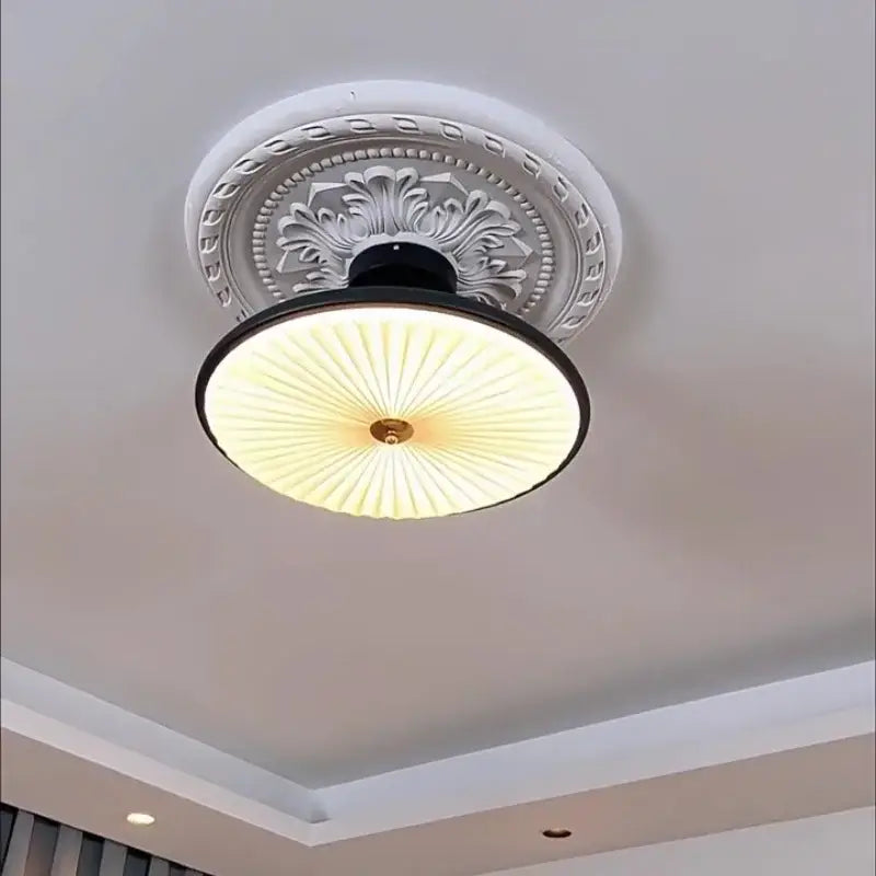El estilo vintage es atractivo por su capacidad para contar historias y evocar recuerdos, incluso en interiores modernos. Esta lámpara de techo vintage, elaborada con vidrio plisado y madera oscura, incorpora sutilmente estos elementos sin resultar excesivamente sentimental ni nostálgica. El vidrio plisado evoca las lámparas de antaño, habituales en casas o apartamentos familiares con el encanto de antaño. La madera oscura, por su parte, aporta profundidad visual y autenticidad, reforzando la sensación de volver a las raíces. Juntos, estos elementos crean una lámpara que trasciende las tendencias y conserva su relevancia a lo largo de los años. Atrae tanto a los entusiastas del diseño retro como a quienes simplemente desean añadir un toque de carácter a su hogar.