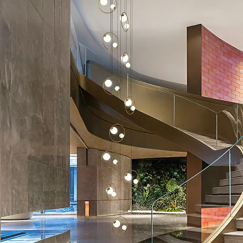 Convierte cada encendido en un momento suspendido donde la luz dorada parece danzar en el aire, modulando sombras y reflejos según el ángulo de observación. Evoca un lenguaje visual conmovedor, casi vivo, donde las esferas doradas se convierten en notas de luz que juegan con los relieves y la percepción. Celebra la poesía de una instalación donde cada movimiento revela un nuevo resplandor.