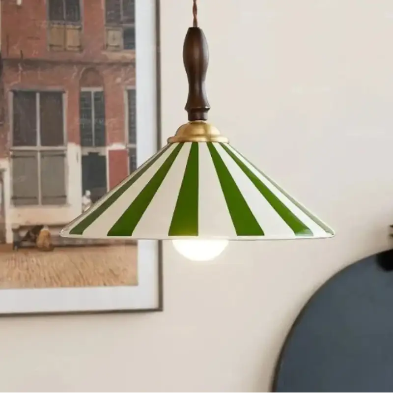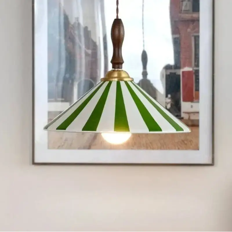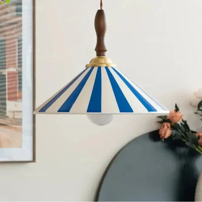 Lámpara colgante cónica con rayas, decoración moderna
