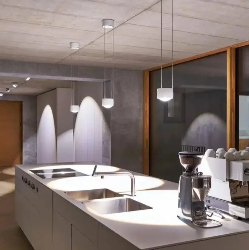 Cambiar la configuración de la iluminación es sencillo gracias a los múltiples niveles que ofrece esta suspensión. Al variar la altura de los cilindros, se puede modular la atmósfera, pasando de un ambiente cálido y acogedor a una iluminación más brillante para momentos de convivencia. Esta flexibilidad transforma la instalación en una auténtica herramienta de escenografía de interiores.
