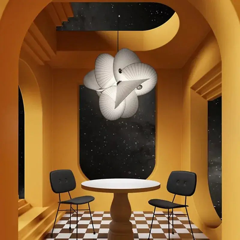 La moderna lámpara colgante con diseño de pétalos esculpidos en blanco aporta elegancia, luz suave y estilo poético a cualquier interior contemporáneo.