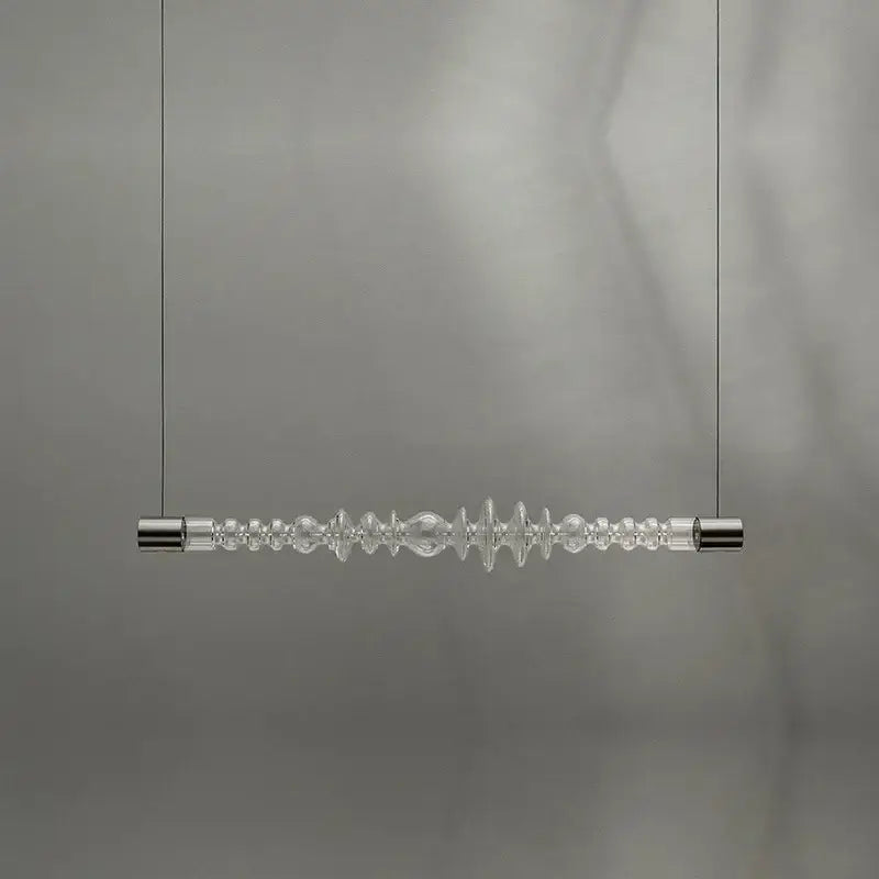 La moderna lámpara colgante horizontal de vidrio te invita a repensar cómo la luz estructura tus espacios. Al añadir profundidad a tus estancias mediante efectos de textura y luminosidad, esta luminaria enriquece la atmósfera general de tu interior. Más que una simple fuente de luz, es una potente herramienta decorativa que transforma cada momento bajo su luz en una experiencia sensorial única.