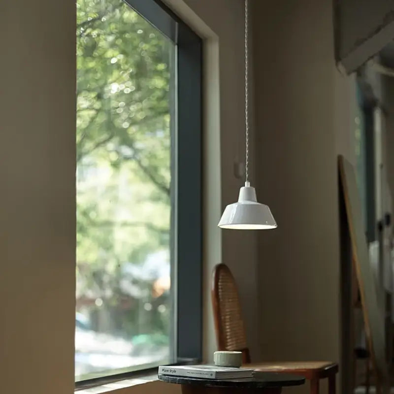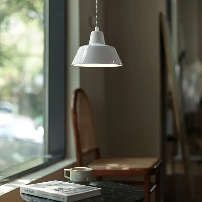 Lámpara colgante de cerámica de estilo taller minimalista que ilumina con elegancia y sencillez, ideal para crear un ambiente moderno, suave y cálido en cualquier espacio.