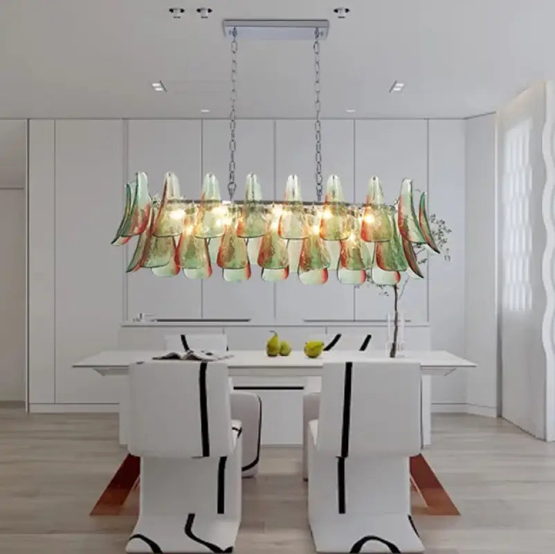 La moderna y elegante lámpara colgante de vidrio soplado de colores ofrece un toque excepcional a su interior, transformando cada habitación en un lugar que irradia elegancia y creatividad.