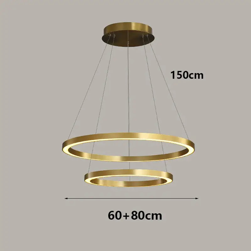 Esta moderna lámpara colgante LED dorada con elegantes anillos es más que una simple luminaria: es un catalizador de ambiente. Te invita a repensar cómo la luz moldea tus espacios e influye en tu día a día.