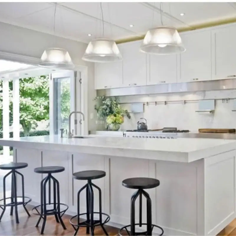 La transparence du luminaire contribue également à créer un effet visuel très élégant. La lumière se reflète délicatement sur les surfaces environnantes et accentue la sensation d’espace dans la pièce. Ce type de suspension est donc particulièrement apprécié dans les intérieurs contemporains où la lumière joue un rôle central dans la mise en valeur de l’architecture et du mobilier.