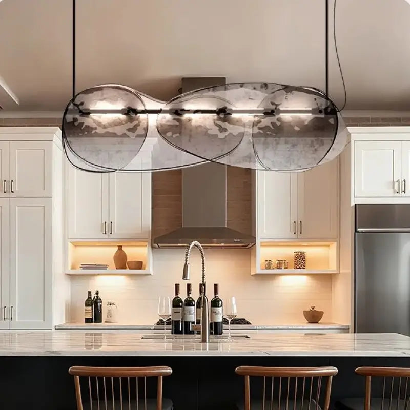 Lámpara colgante única de vidrio y metal: eleva su interior al combinar la elegancia del vidrio, la robustez del metal y una atmósfera cálida para un espacio completamente transformado.