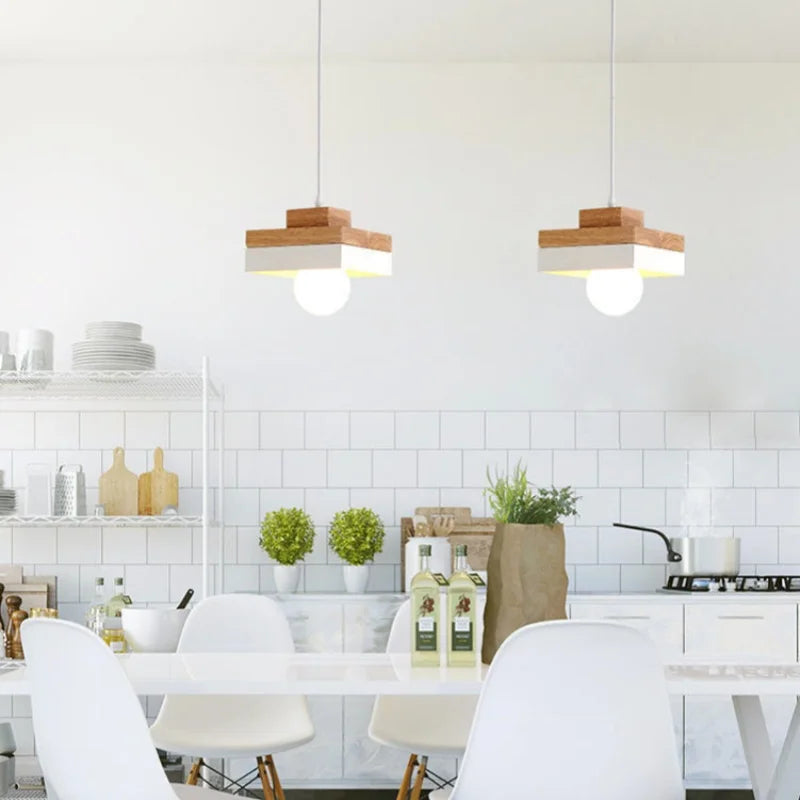 Suspension luminaire en bois minimaliste scandinave apporte une lumière douce et naturelle idéale pour créer une décoration intérieure chaleureuse.