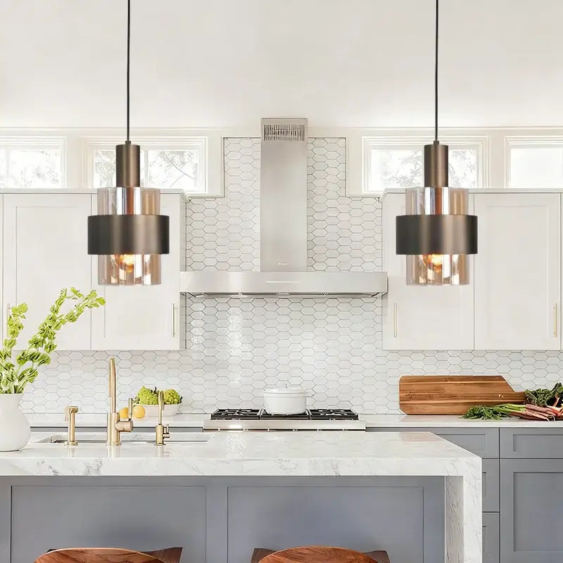 La moderna lámpara colgante de vidrio y metal combina elegancia y funcionalidad, aportando una luz suave y un estilo refinado a su interior.