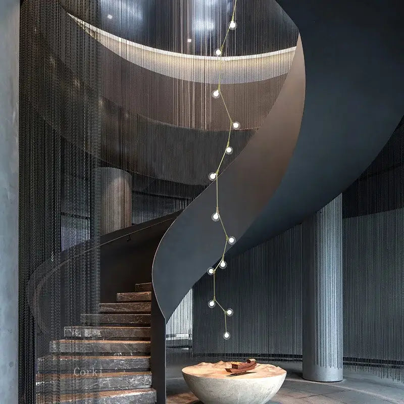 Sus líneas limpias le confieren a la lámpara colgante un estilo contemporáneo, integrándose a la perfección tanto en interiores modernos como clásicos. Su estética evoca una sensación de ligereza y equilibrio, como si las esferas opalescentes flotaran en el aire. Representa un enfoque decorativo sutil y deliberado, diseñado para atraer a los amantes del diseño más exigentes.