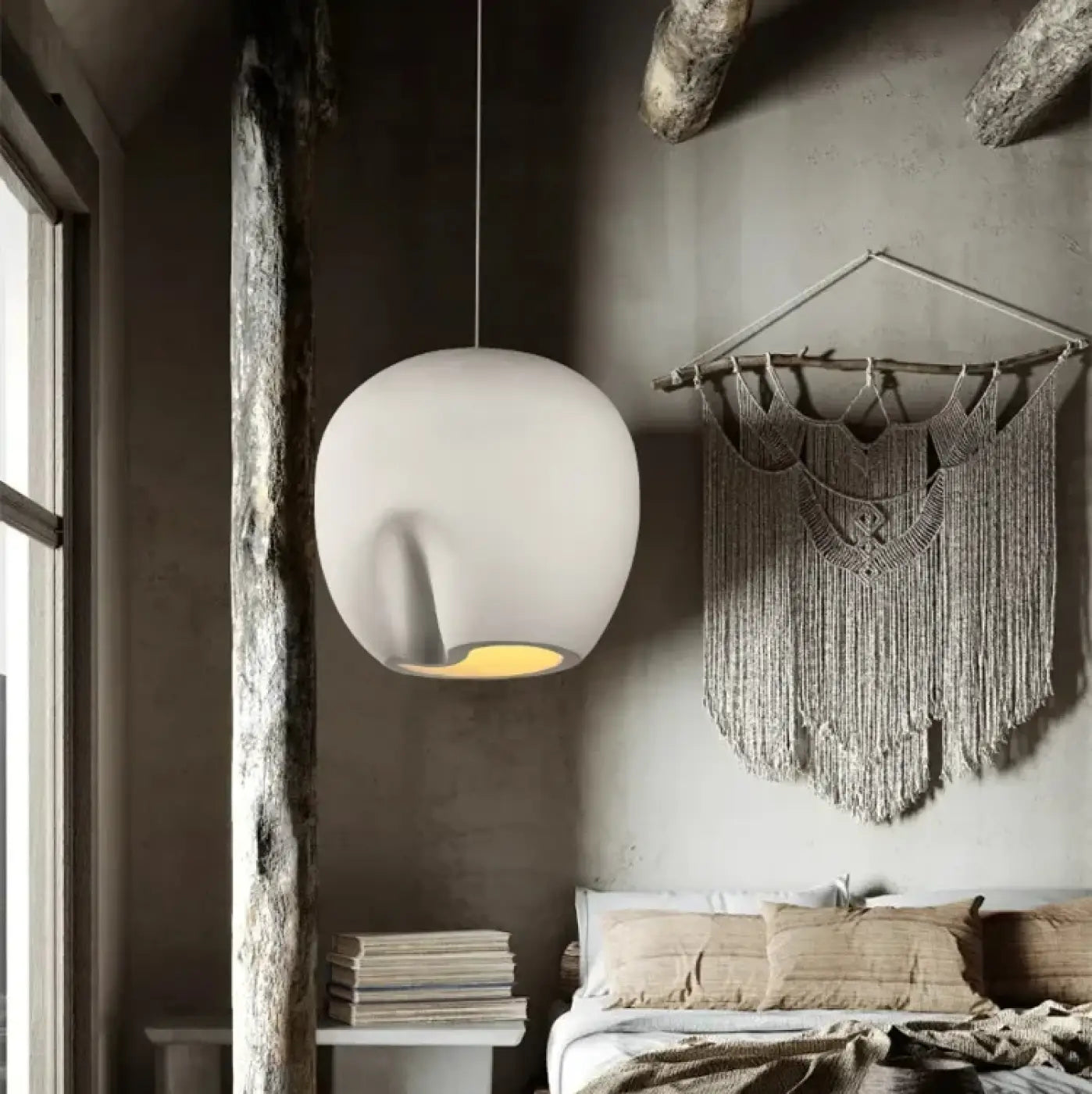 La lámpara de suspensión de forma orgánica estilo contemporáneo no se limita a su función principal de iluminación. Actúa como un verdadero elemento arquitectónico capaz de redefinir una habitación. Colocada en el centro de un salón o encima de una mesa, se convierte inmediatamente en el punto focal.
