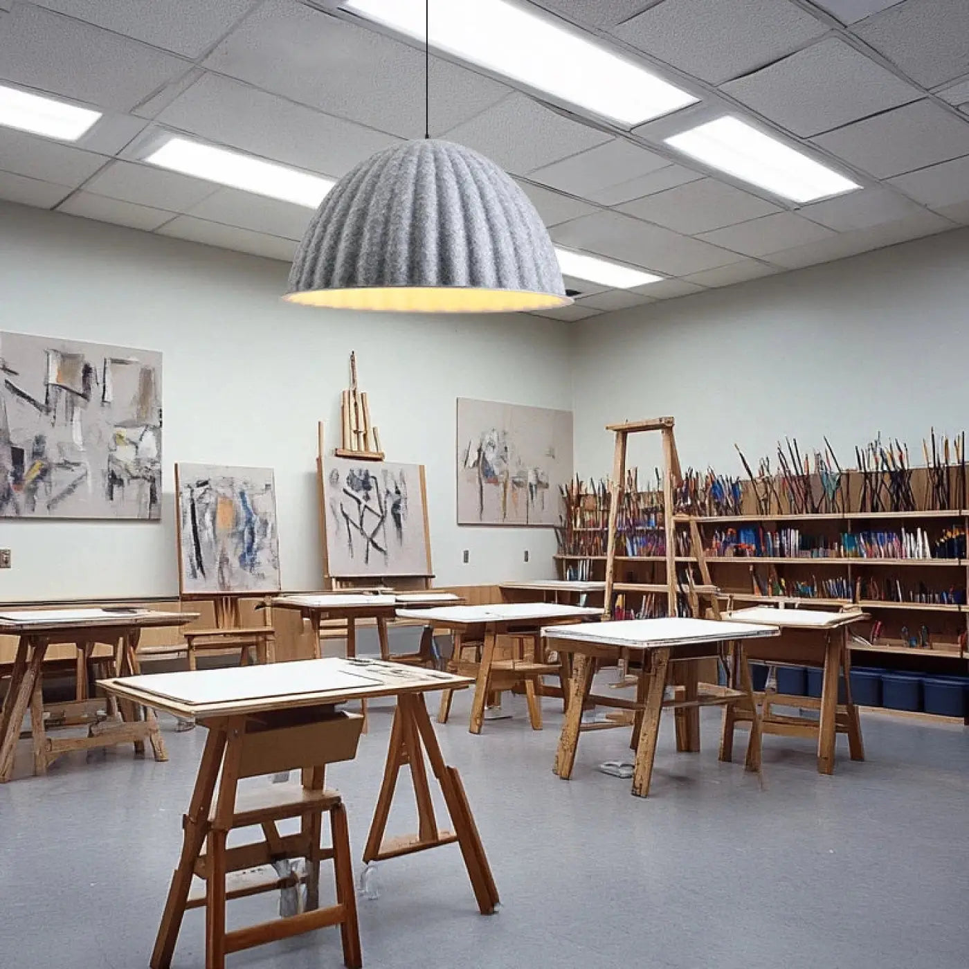 La lámpara colgante moderna de fieltro acanalado de estilo nórdico ilustra perfectamente este enfoque al proponer una luminaria que combina elegancia, modernidad y suavidad.