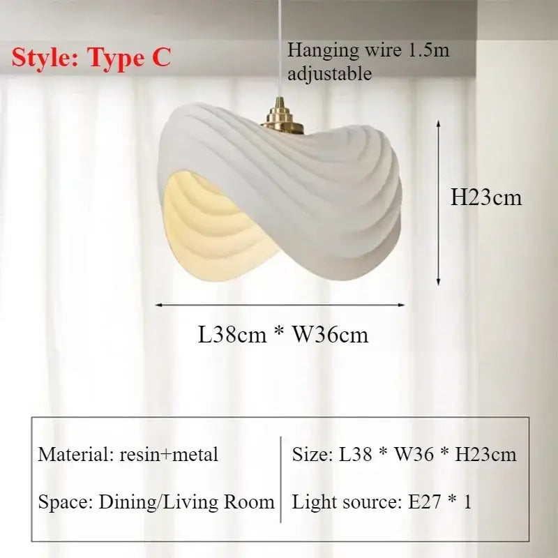 La belleza de la lámpara colgante blanca de diseño orgánico esculpido para sala de estar reside en su diseño fluido y contornos naturales. Evoca las formas orgánicas de la naturaleza con suaves ondulaciones y sutiles curvas, ofreciendo un efecto casi poético.